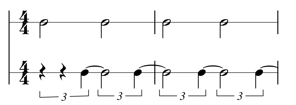 2つの拍の距離が2/3になるとそれは2/3のの長さを持つ2拍3連2個分の細かさを持つことになる。