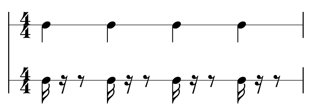 これはつまり全ての音価の音符から裏拍だけを残したものだ。
