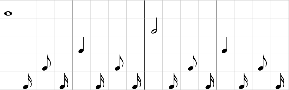 前章の例では2つの拍の距離は1/2だったが、これをもし1/4にしたらどうなるだろうか。