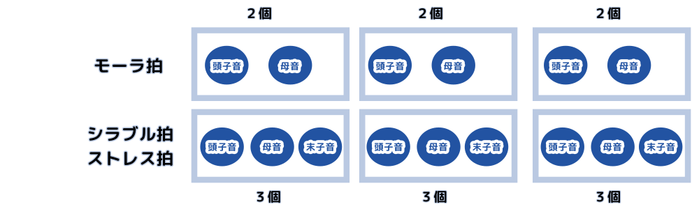 結論を先にいうと、何故日本人は2拍子を自然だと感じるのか ─── それは音節(モーラ)が頭子音と母音という2要素で構成されているからです。 そして何故日本人以外の人々は、3拍子を自然だと感じるのか ─── これは音節(シラブル)が頭子音・母音・末子音という3要素で構成されているからです。